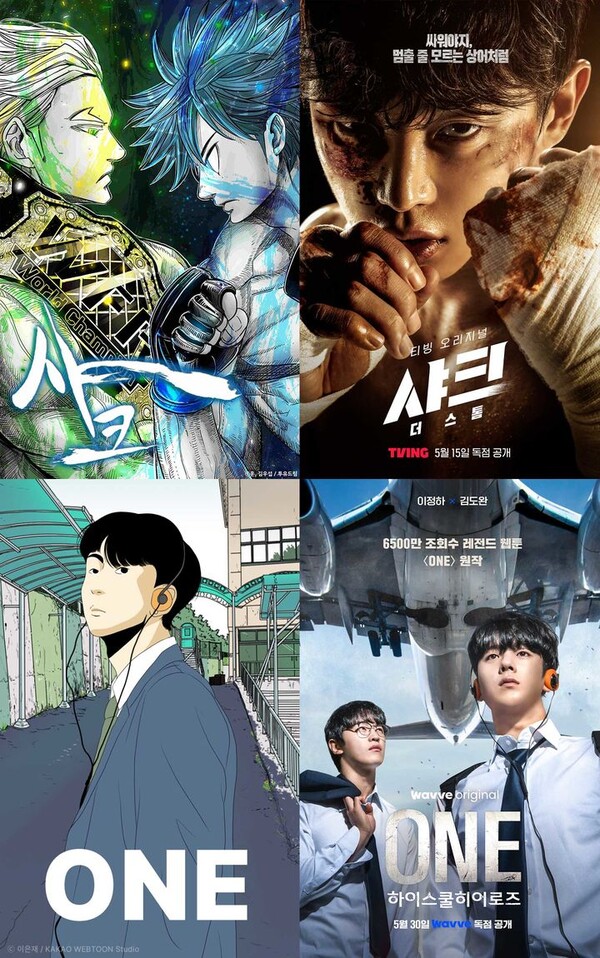 원작과 드라마의 비교에서 오는 재미도 클 것으로 보인다. 30일 공개되는 웨이브 오리지널 시리즈 'ONE: 하이스쿨 히어로즈'는 배우 이정하와 김도완이 각각 주연을 맡아, 아버지의 억압에 시달리던 전교 1등 '의겸'(이정하)과 그의 싸움 재능을 이용하려는 '윤기'(김도완)가 복면을 쓴 '하이스쿨 히어로즈'를 결성해 억눌린 분노를 폭발시키며 학교 내 폭력 서열을 뒤엎는 하이스쿨 액션 드라마다. 원작의 설정과 캐릭터를 충실히 재현하는 동시에, 복싱·검도·주짓수 등 회차마다 공들인 액션과 풍부한 스토리로 팬들을 사로잡을 예정이다.