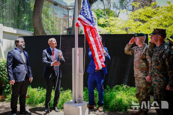 시리아 수도 다마스쿠스에서 10년 넘게 문이 닫혀있던 미국 대사 관저에 29일 미국 성조기가 게양돼 워싱턴과 새 시리아 정부 사이의 관계를 말해주었다.